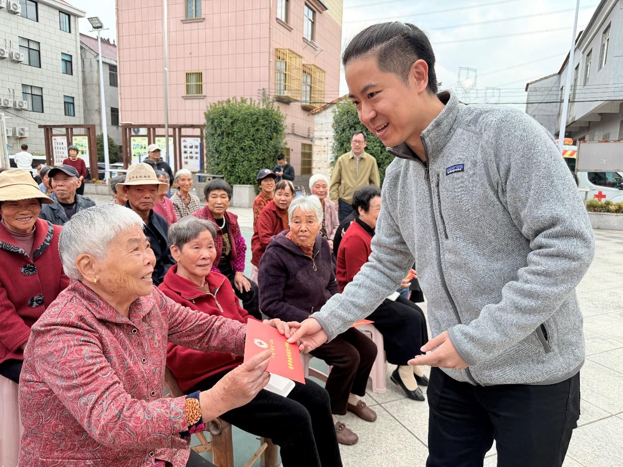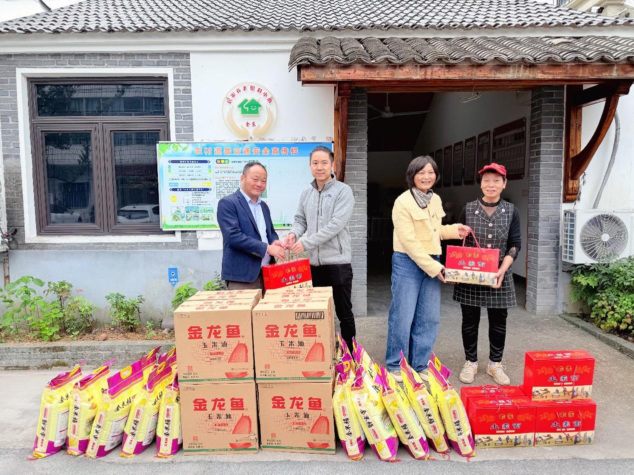 村里的文化舞臺下,紅底黃字的“重陽慰問”橫幅早早就掛了起來;辦公樓前,一袋袋米油面碼得整整齊齊;志愿者們忙忙碌碌穿梭其間,熟絡(luò)地給老人們剪指甲、梳頭發(fā)、嘮家常——10月27日上午,金東區(qū)嶺下鎮(zhèn)摩訶村文化廣場上,洋溢著濃濃的節(jié)日氛圍。在2025年重陽節(jié)來臨之際,金廈集團總裁傅融率集團高層再次走進(jìn)摩訶村,帶著心意,赴這場持續(xù)了14年的“敬老之約”。
